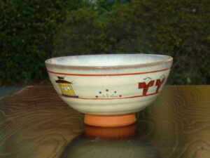 赤膚焼きの奈良絵の御飯茶碗です。
